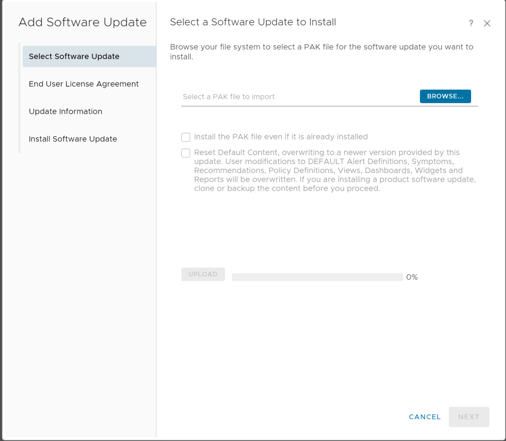 - The software update wizard will appear. Click on Browse then navigate and select the pre-assessment pak downloaded earlier.