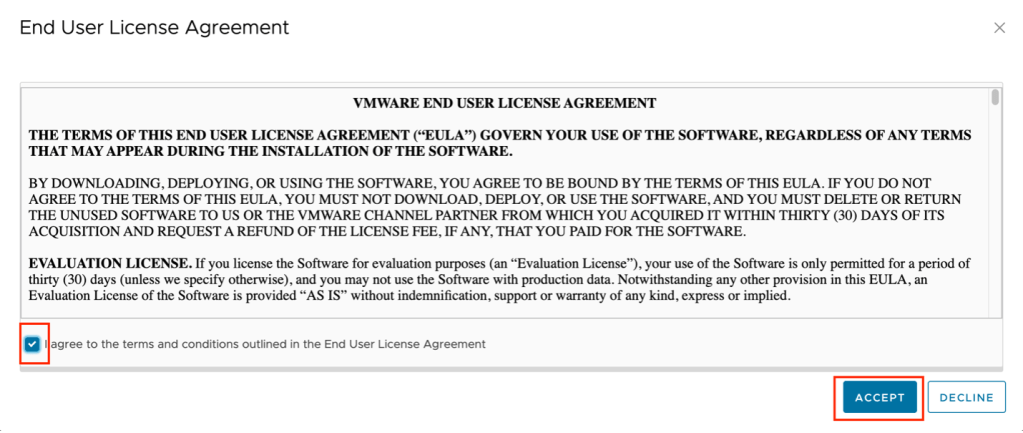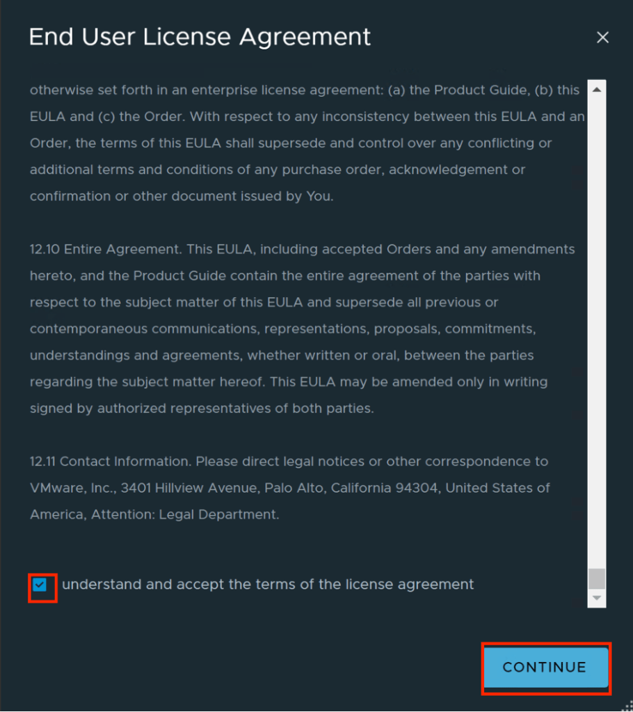 - The end user license agreement will pop-up. Scroll down until you see the checkbox to accept the agreement. Check the box the click continue.