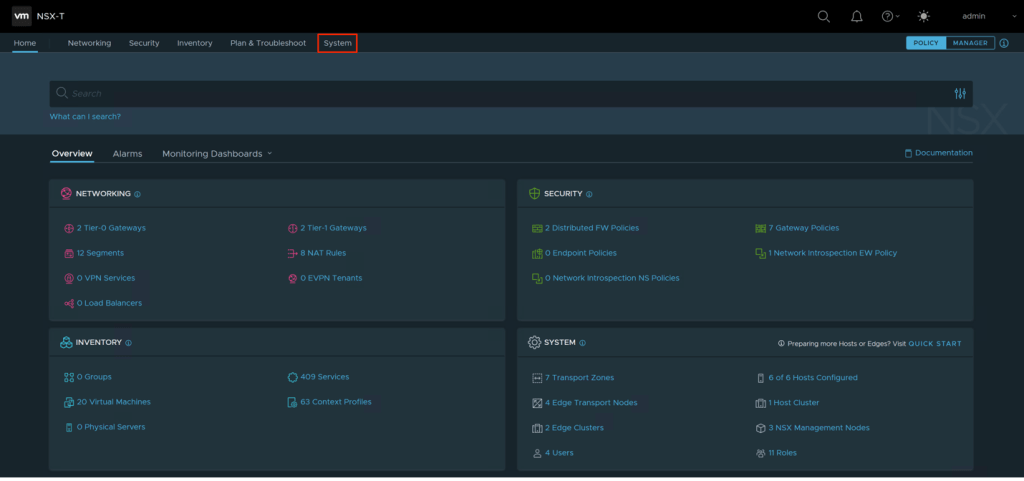- Using the IP address and credentials from the IBM Cloud portal for your instance, log into NSX Manager.