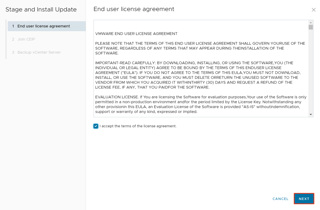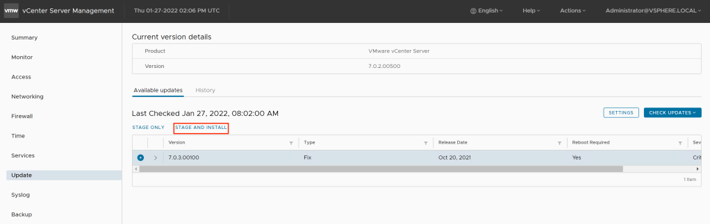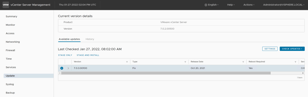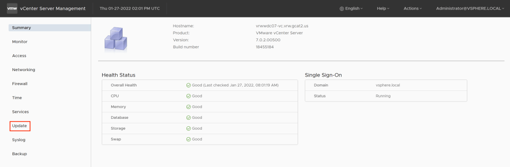 Our last step us to update vCenter Server. To do so: