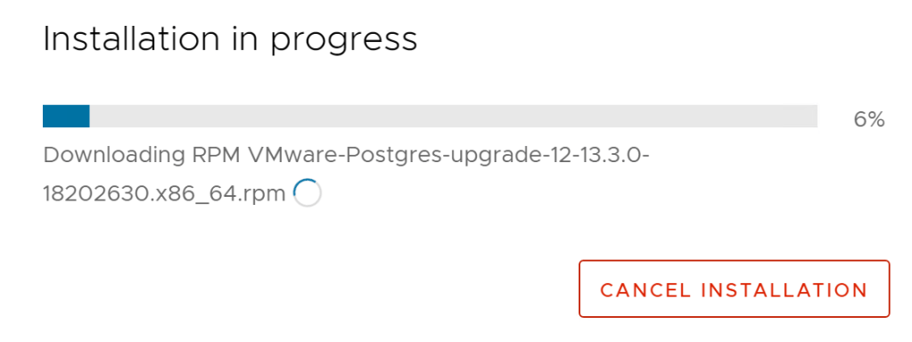 - The installation progress bar will appear to monitor progress of the update.