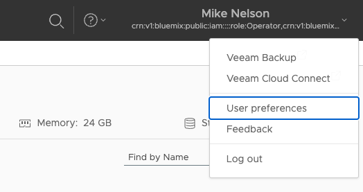 Once logged in, click on your name in the upper right corner of the console and select User Preferences.