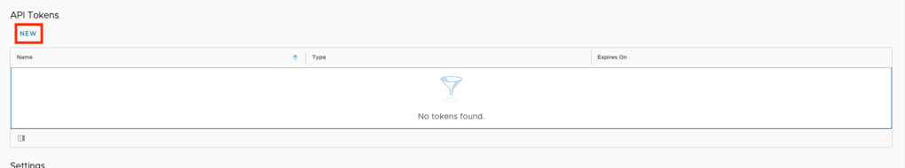 The user preferences page will appear. From there scroll down if needed until you see the section labeled API Tokens. Click on NEW under this heading to create a new token.