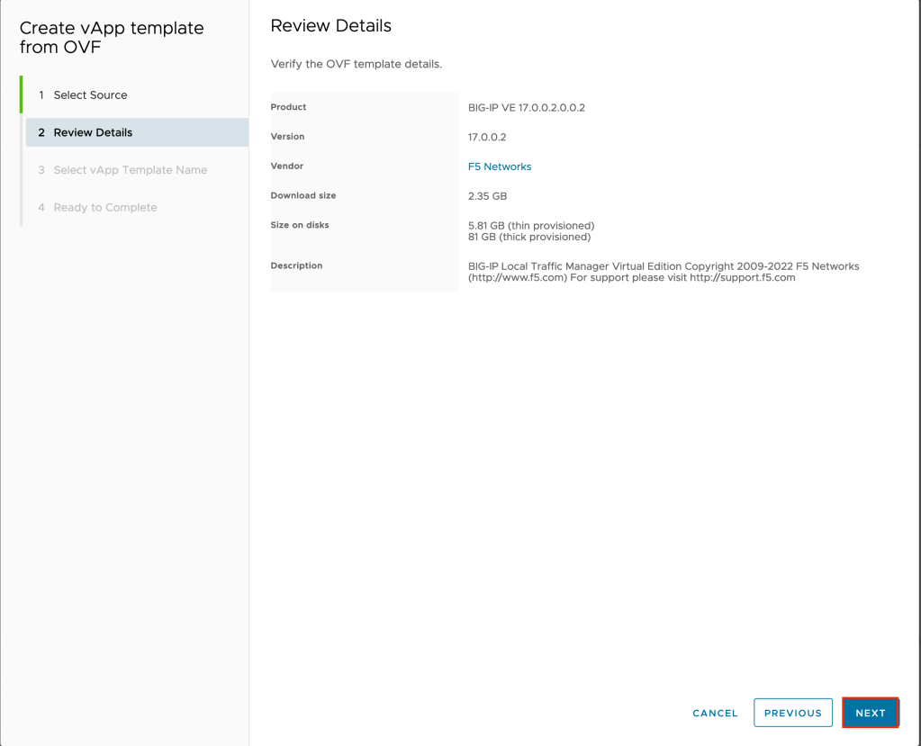 This concludes part one of this tutorial. In part two I will cover deploying the F5 and configuring the management interface.
