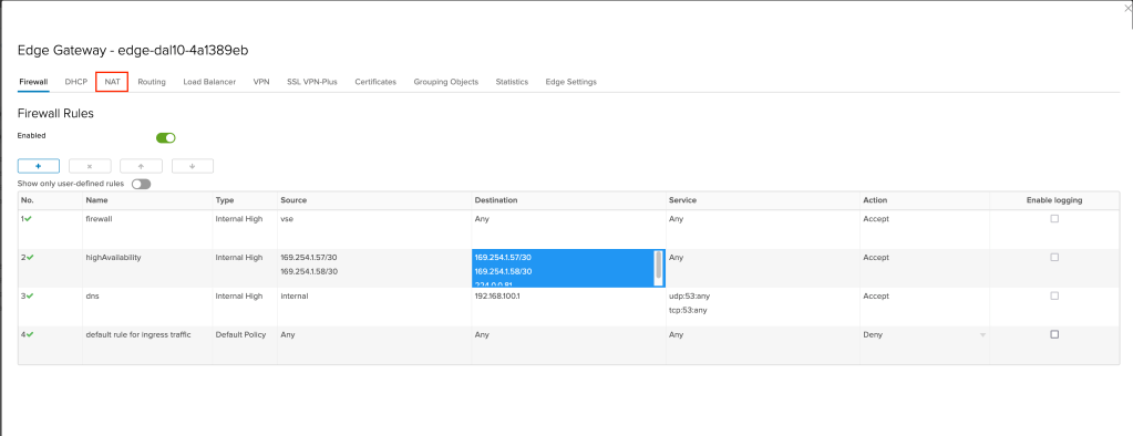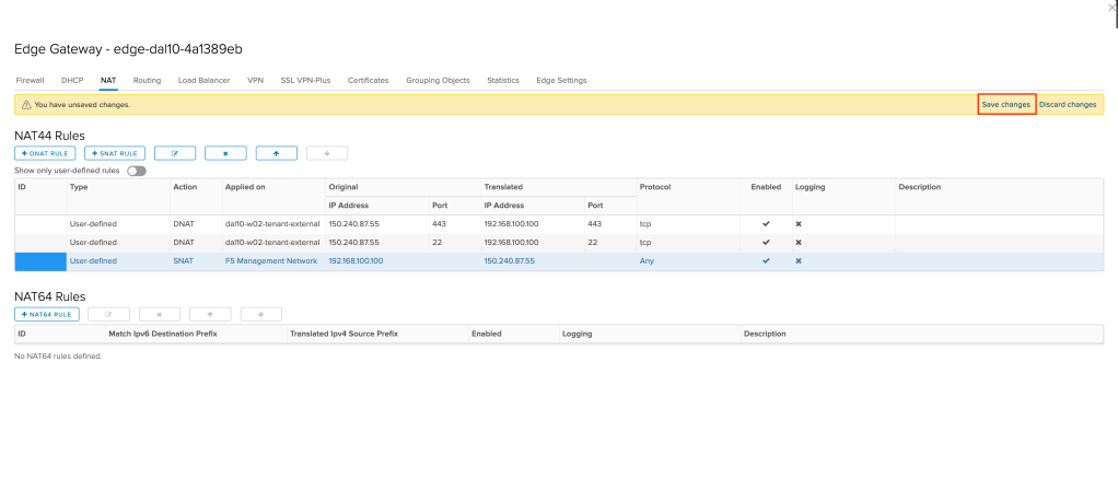 The next step is creating network address translation (NAT) rules to both allow our F5 virtual machine to access the Internet (for registration) as well as to access the web UI directly.