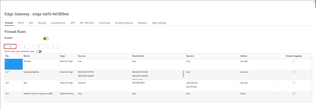 Finally, to complete this part of the tutorial we need to create firewalls rule allowing both our F5 virtual machine out to the Internet as well as inbound from the Internet. To start, click on Firewall in the gateway navigation.
