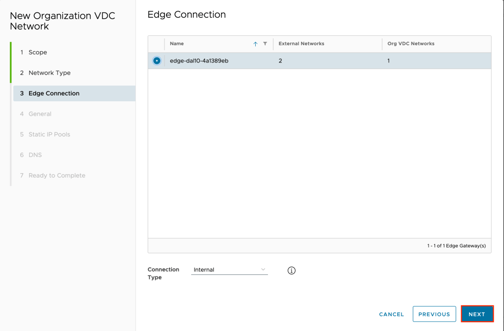 Select your edge connection and leave the connection type as Internal and click NEXT.