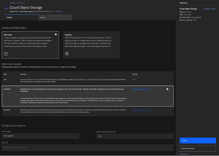 Step One: Create an IBM Cloud Object Storage instance in IBM Cloud