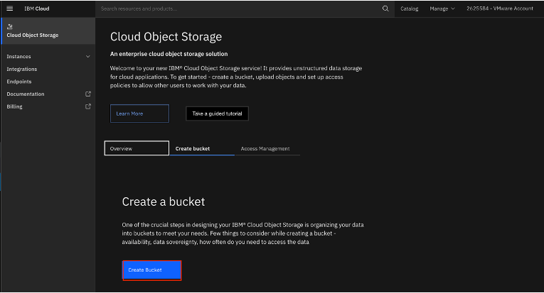 - Create an IBM Cloud Object Storage instance in IBM Cloud