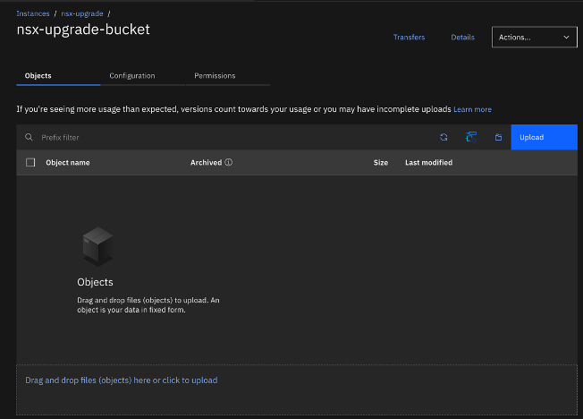 As part of the Cloud shared responsibility model, it is a client’s responsibility to ensure applications such as NSX are at the latest level. This document walks through the process of setting up an IBM Cloud Object Storage bucket to upgrade NSX.