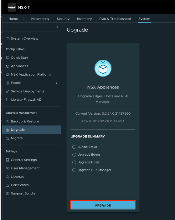 Note that this document does not guide through the actual NSX upgrade, only on uploading the necessary data to begin the upgrade process.
