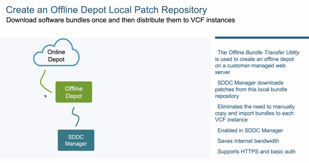I work in a lot of regulated environments, and with clients that in no circumstance want their systems directly connected to the Internet. They prefer not even having proxy servers. For years vSphere has had the ability to have an offline repo for updates, and now that functionality has been brought to VCF. Especially with my work on IBM Cloud – I can now spin up a small virtual instance running a web server and use that to pull down the updates, ensuring security and isolation. Then every VCF instance in the environment can use that repository. Saves time, make it more secure, basically everything I’d want to be able to do. Let’s be honest it’s not the most flashy functionality, but is a great step forward in Day 2 operations.